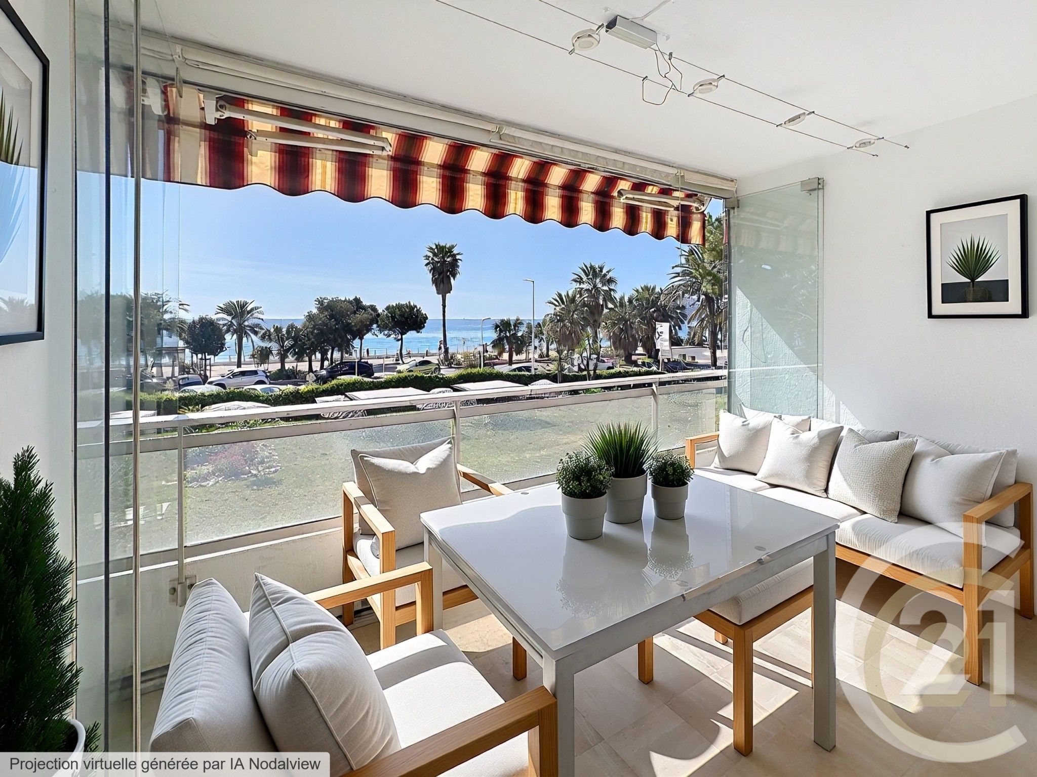 Dès l'entrée, vous serez séduit par un hall accueillant menant à un séjour lumineux s'ouvrant sur une spacieuse terrasse loggia, véritable pièce de vie supplémentaire, avec une vue mer panoramique à couper le souffle.